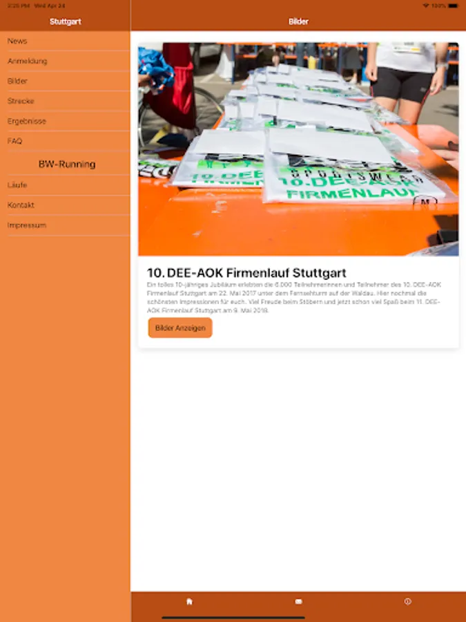 With this app you get an overview of current and past runs of the company run series of the Baden-Württemberg athletics associations