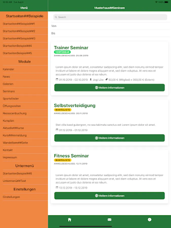 VereinsCMS App of Tricept AG, this app is only for presentation purposes. Therefore no login data is needed. To use the app we have an internet connection provided.