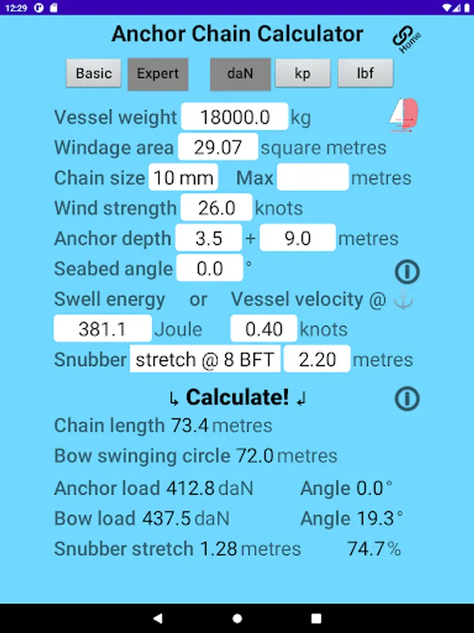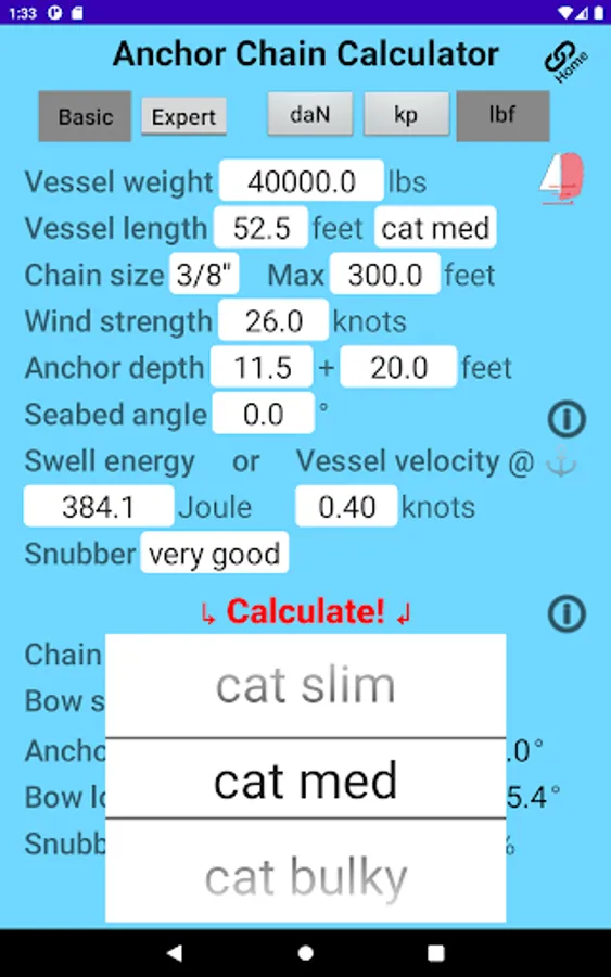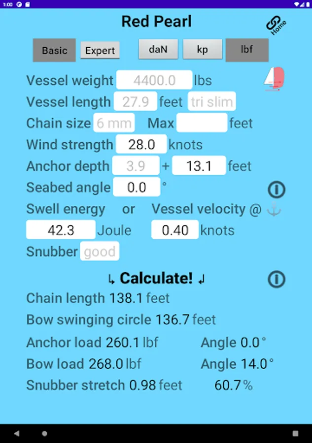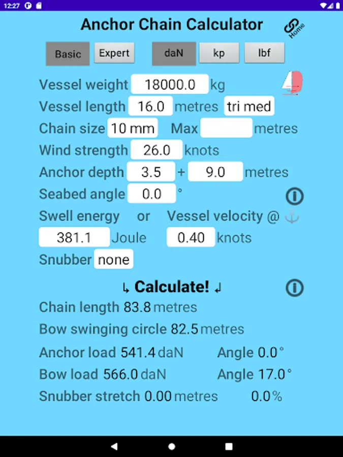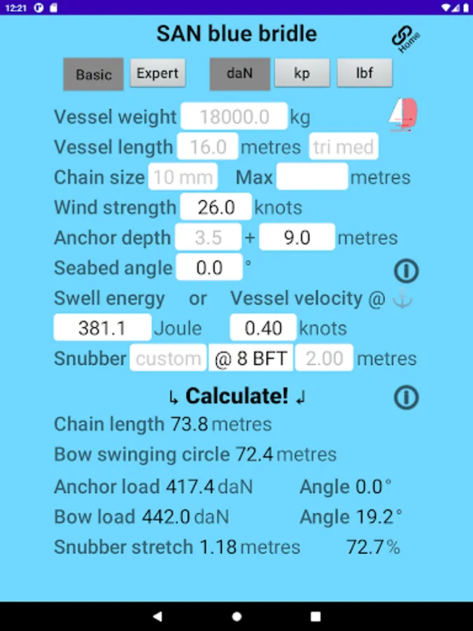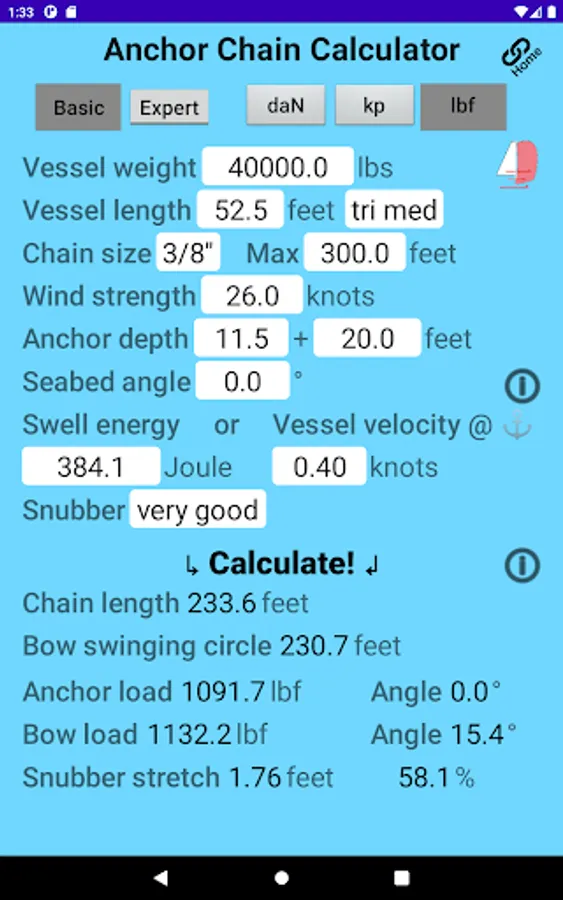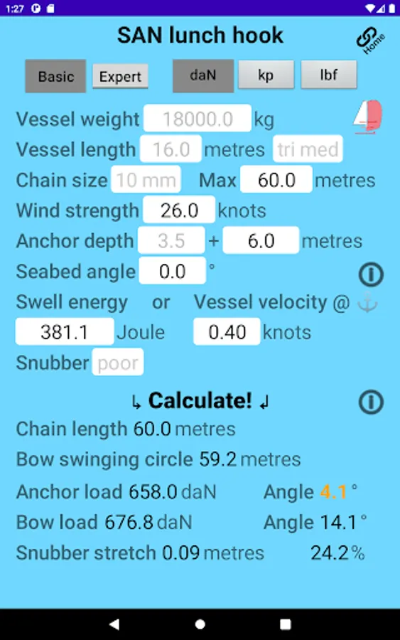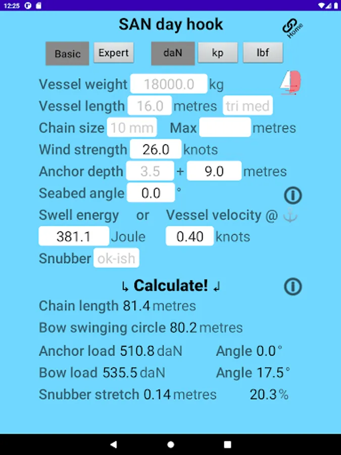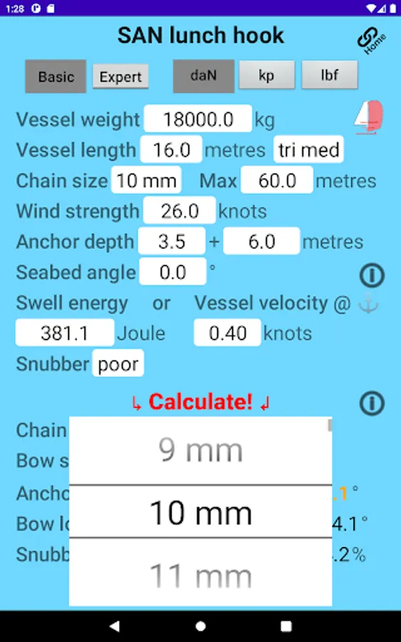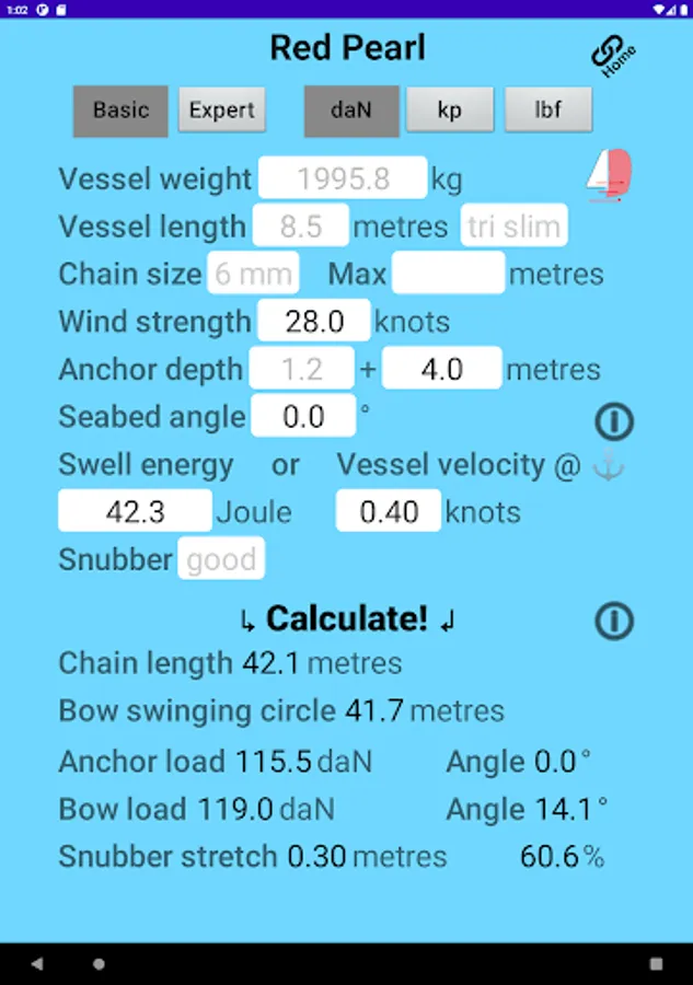The app has two modes of working: Basic Mode and Expert Mode. With Basic Mode you will be able to use the app right away, whilst Expert Mode allows you to enter more technical details of your boat if you know them.