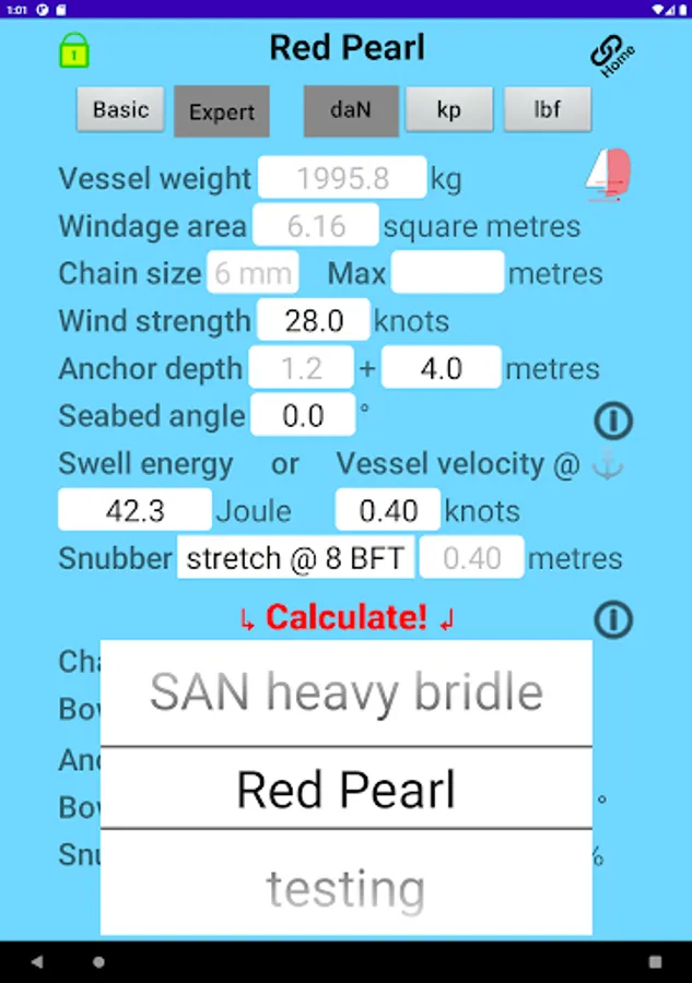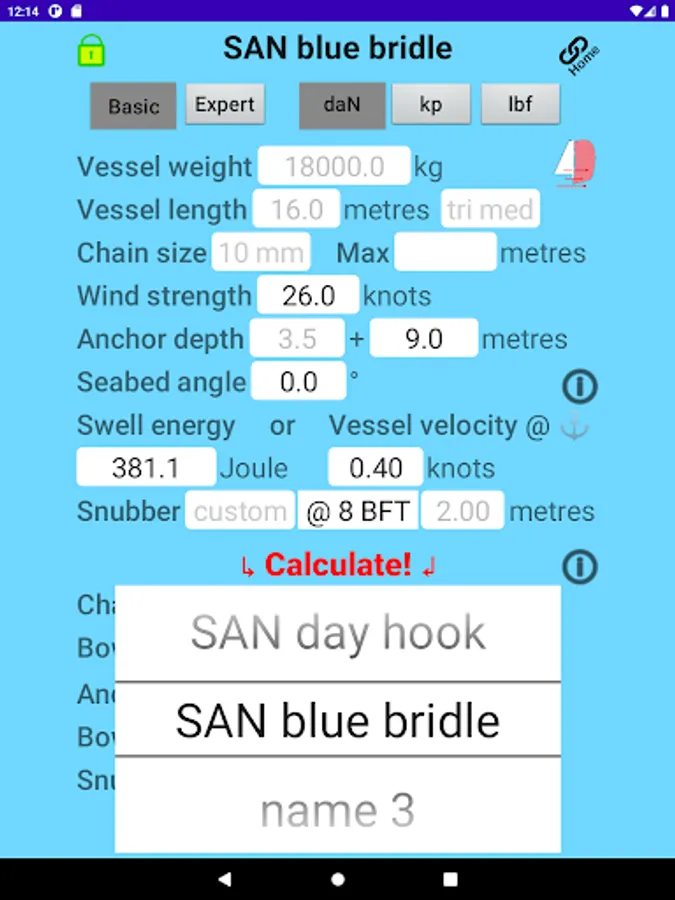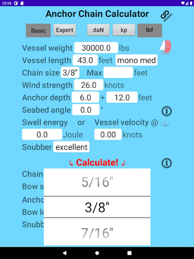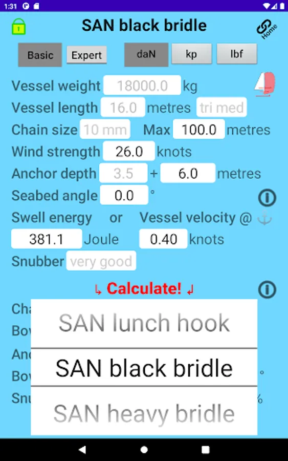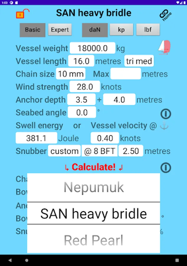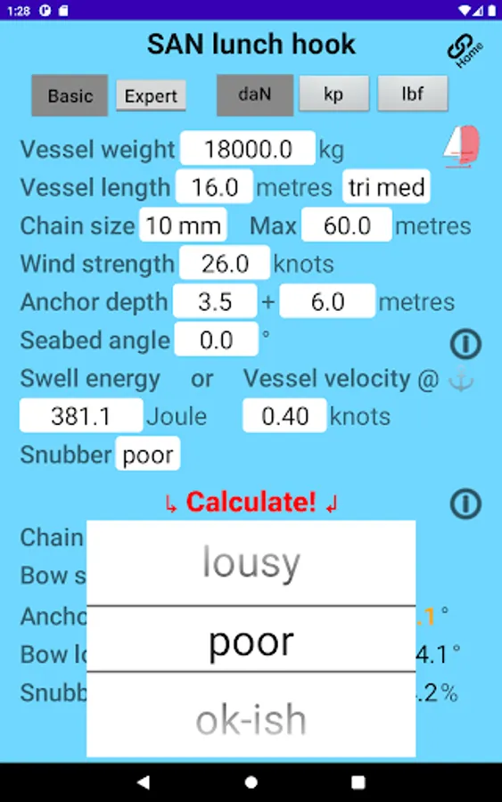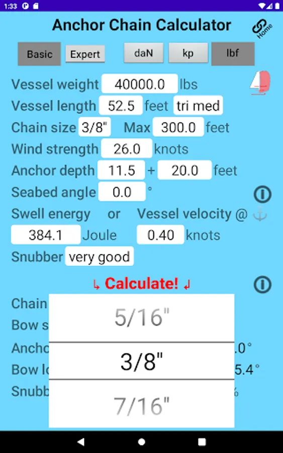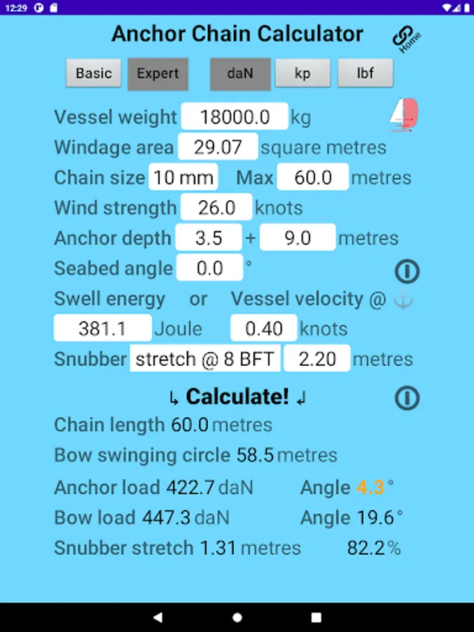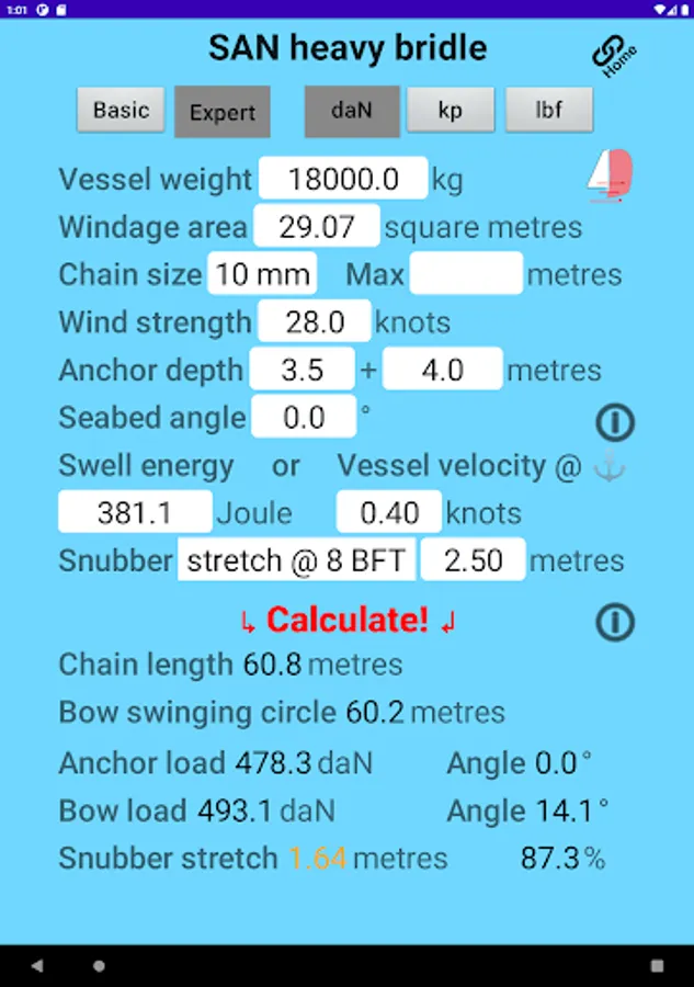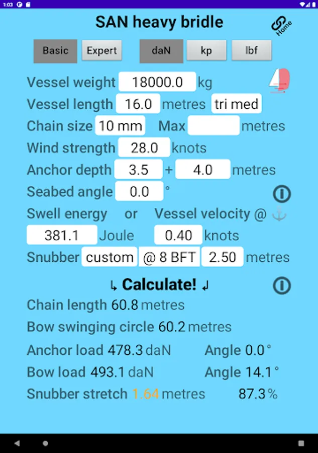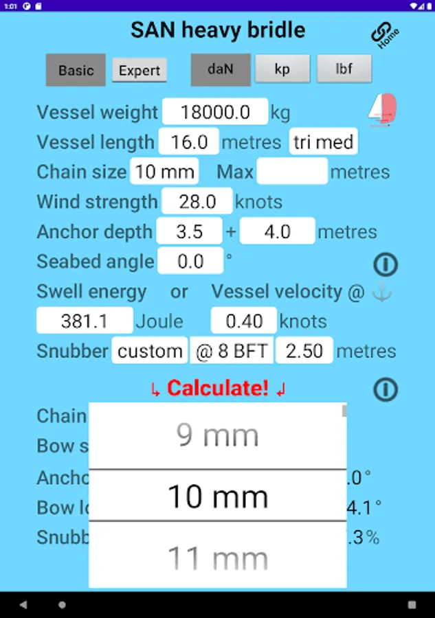 The app has two modes of working: Basic Mode and Expert Mode. With Basic Mode you will be able to use the app right away, whilst Expert Mode allows you to enter more technical details of your boat if you know them.
