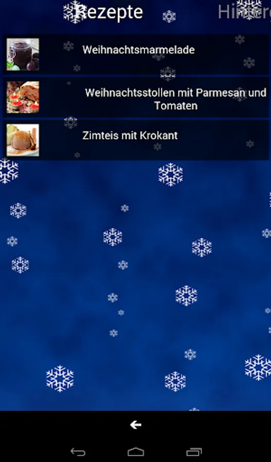 Unfortunately, you'll find in our advent calendar app for technical reasons no chocolate. Instead, you will find beautiful winter wallpapers, Christmas ringtones, Christmas stories, delicious recipes and some free apps - so just something to take time to think or laugh.