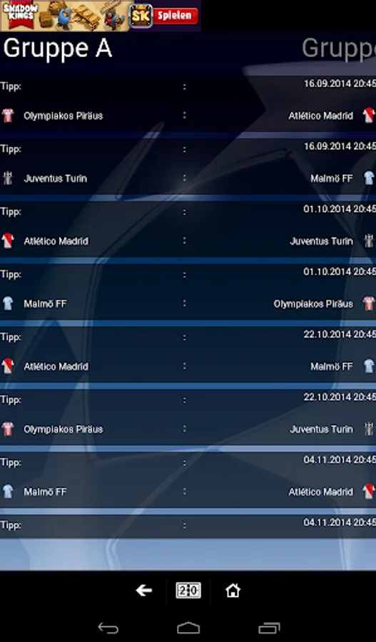Due to the clear match plan you are up to date on all the matches. Also, results of past matches can be viewed. The other top features of Champions League Predictor: