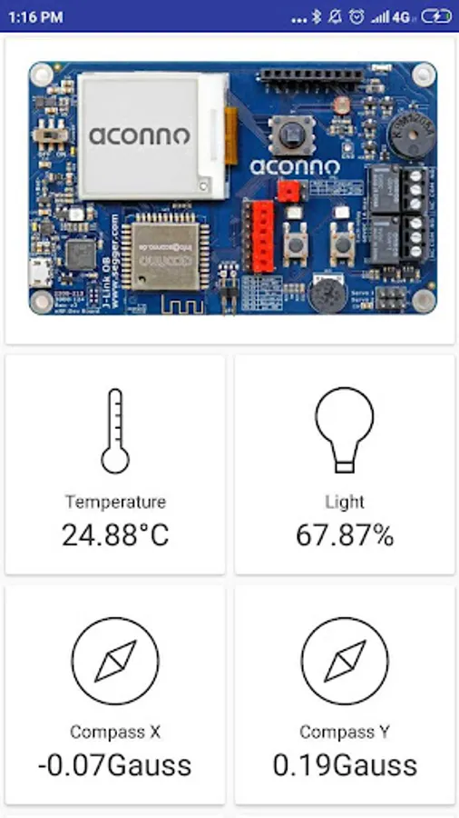 aconno's ACD BLE Interface application connects your android smartphone or tablet to aconno's ACD52832 and ACD5284 development boards.