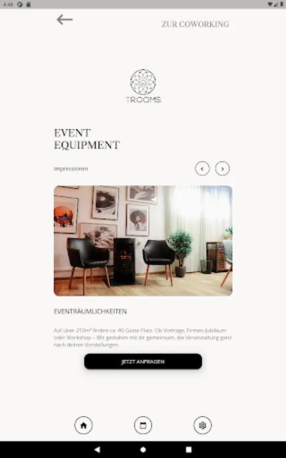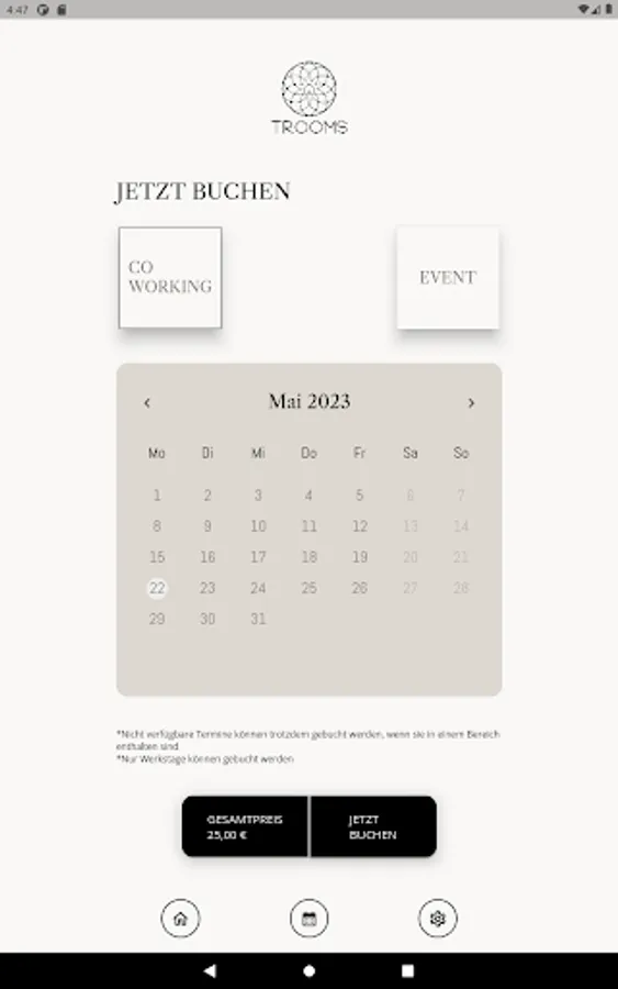 Book your coworking space in Ulm now with the TROOMS app! Increase your productivity and take advantage of our easy-to-use calendar booking system. With just a few taps, you can select the period you want and book a workspace that fits your schedule. And with our user-friendly profile function, you can keep track of all bookings and easily manage your account details. Whether you need a workspace for a day or a month, our app makes it easy to book your ideal workspace. Download the app today and become part of TROOMS!