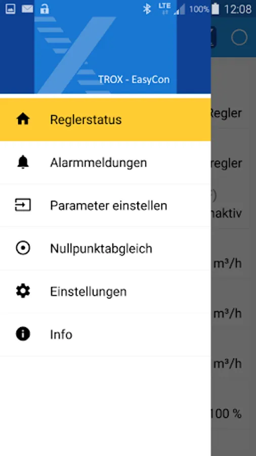 The TROX EasyCon APP turns your Android Samrtphone into an on-the-spot diagnostic and maintenance tool for TROX UNIVERSAL REGULATOR VVS volumetric flow controllers. With the aid of EasyCon, TROX UNIVERSAL controllers can query current operating states as well as faults and alarm messages. It is also possible to change selected parameters in the TROX UNIVERSAL CONTROLLER with the EasyCon APP, such as setpoint volume flows or setpoint room / duct pressure. A necessary zero point adjustment of the internal differential pressure transmitter can also be done with the EasyCon App.