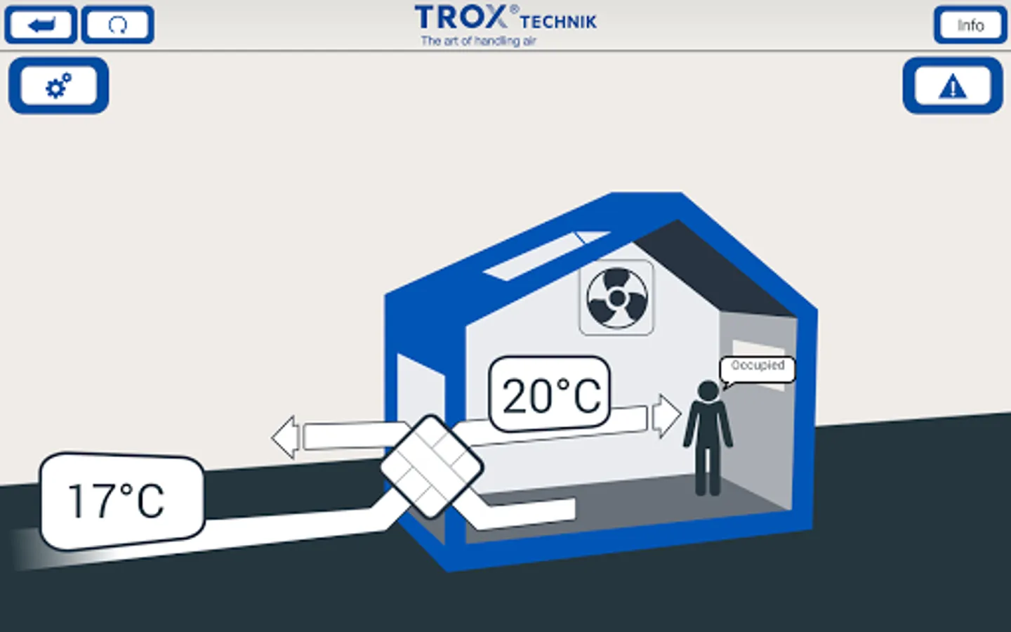 The mobile application for the control of TROX X-AIRHOME ventilation and heat recovery unit from TROX.