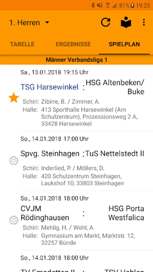 - Home Calendar to display the next home games of all teams TSG Harsewinkel