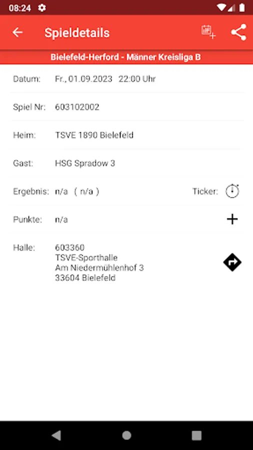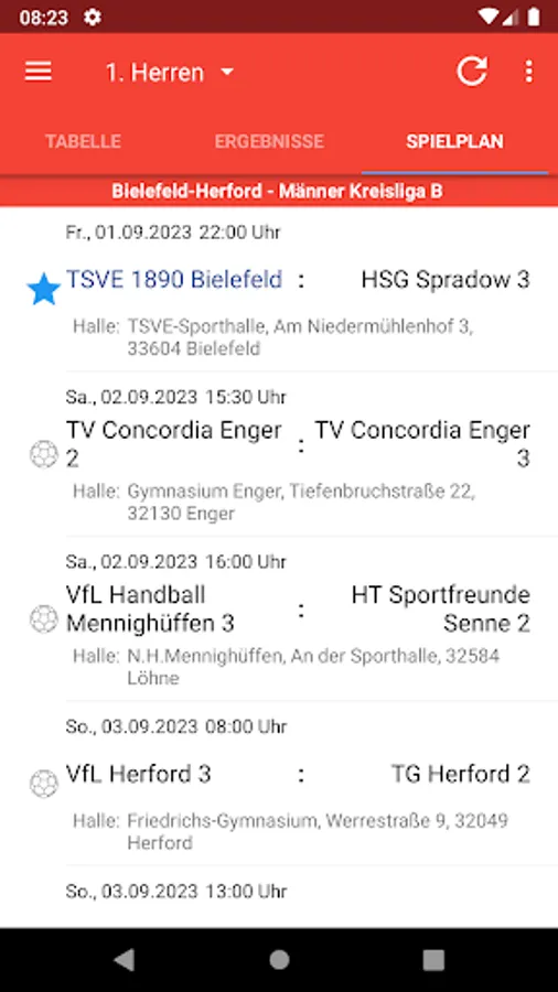 - Home game calendar to display the next home games of all TSVE Bielefeld teams