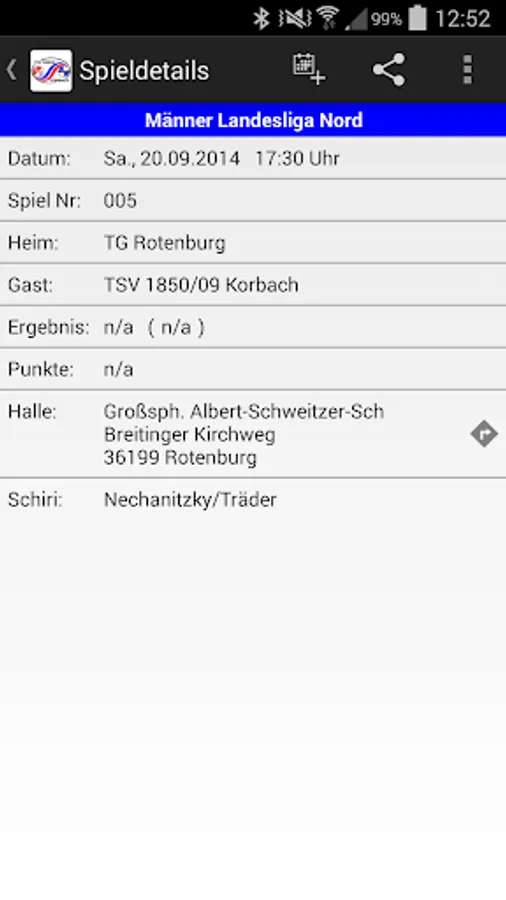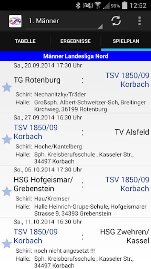 - Match Calendar to display the next home games of all teams TSV Korbach