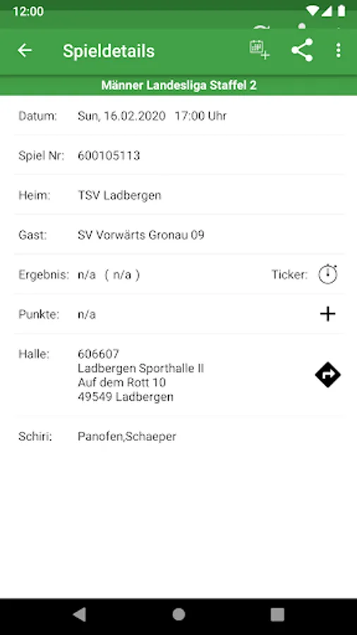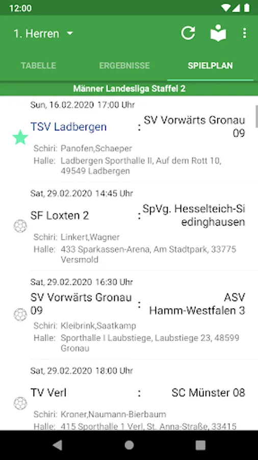 - Home game calendar to show the next home games of all TSV Ladbergen teams