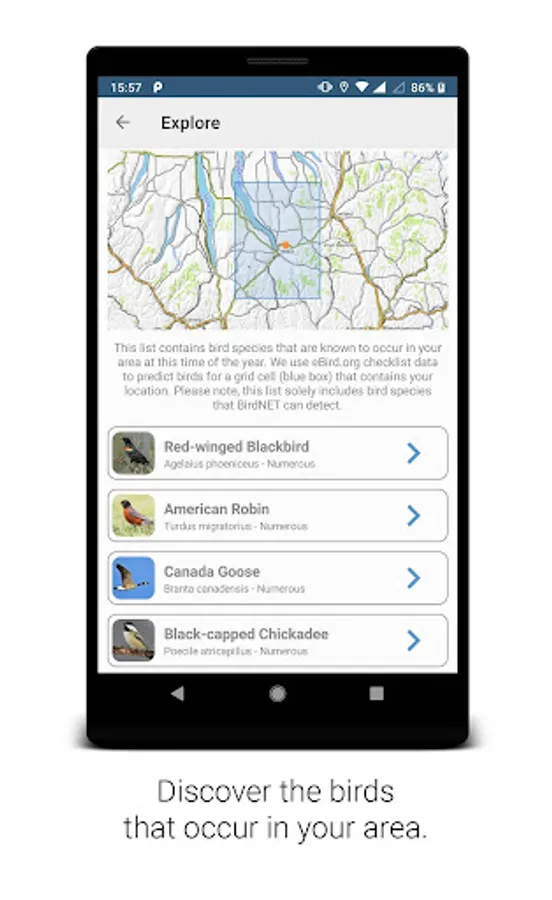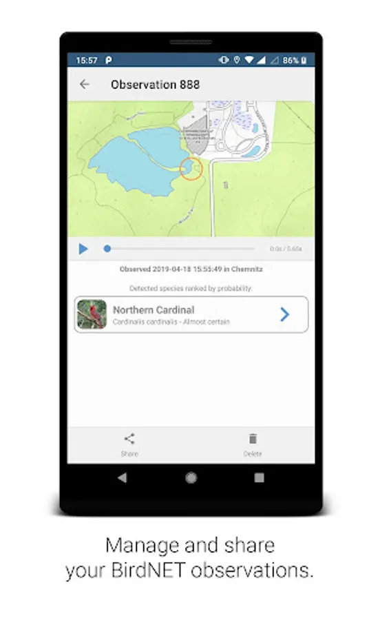 How can computers learn to recognize birds from sounds? The BirdNET research project uses artificial intelligence and neural networks to train computers to identify more than 3,000 of the most common species worldwide. You can record a file using the microphone of your Android device and see if BirdNET correctly identifies the probable bird species present in your recording. Get to know the birds around you and help us to collect observations by submitting your recordings.
