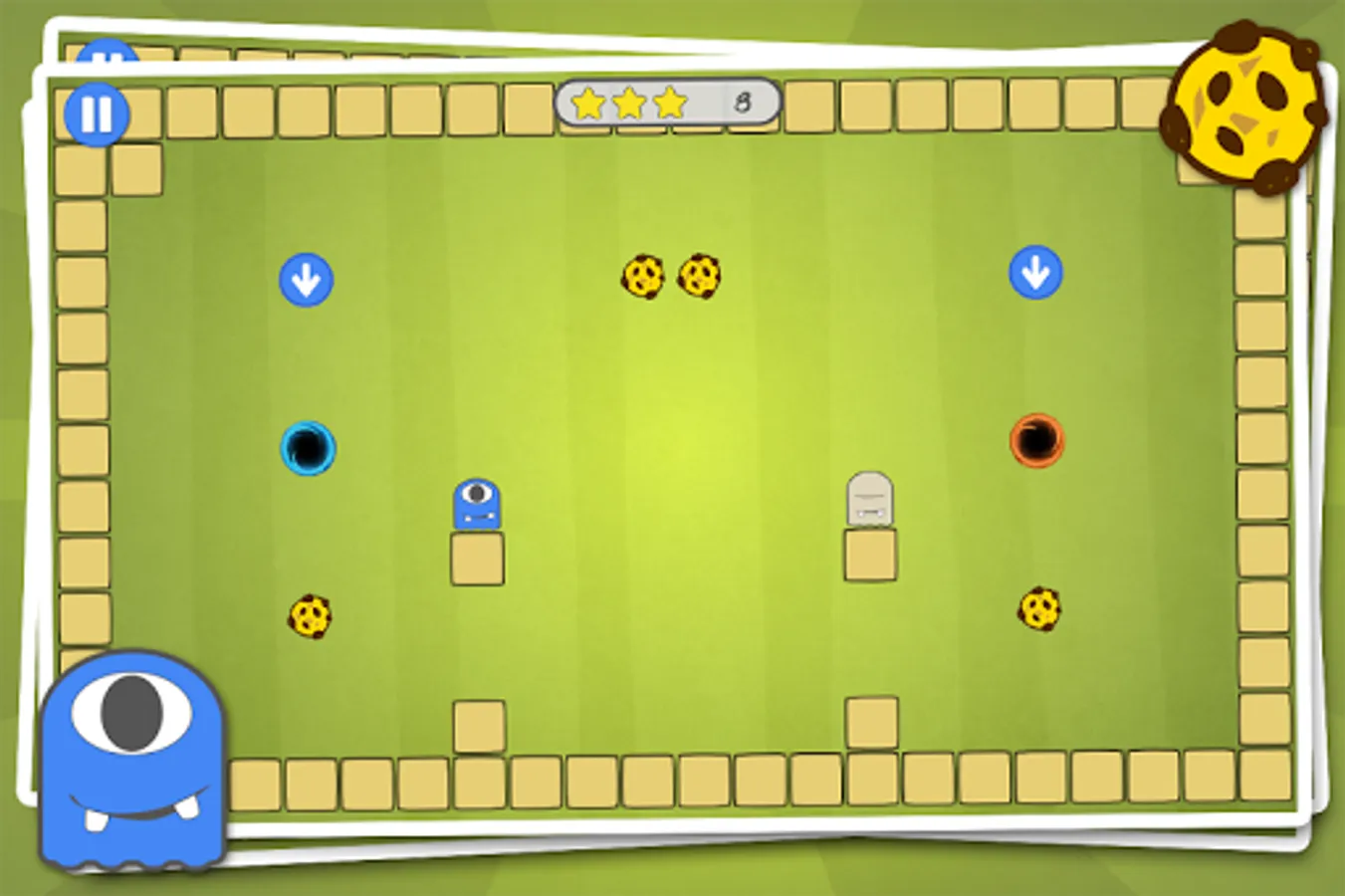 • Hop through portals to reach all cookies