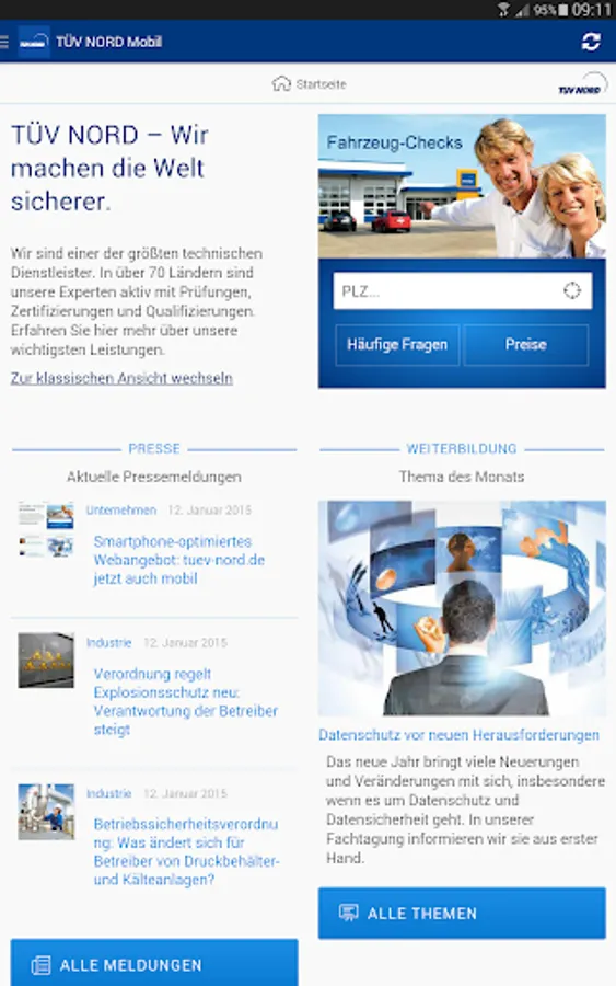 TÜV NORD Mobile presents our main services on mobile devices (tablets, smartphones). We are one of the largest technical service for testing, certification and qualifications. Download TÜV NORD mobile from Google Play so you among other things the following functions and information can be used: