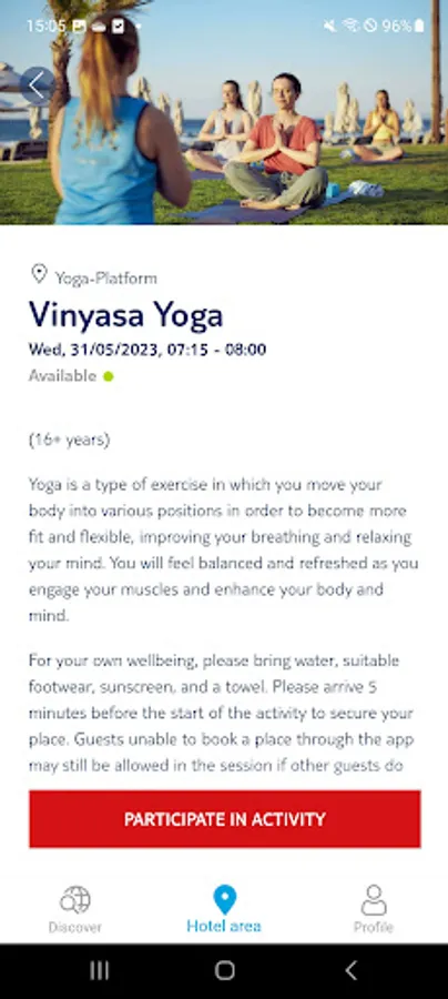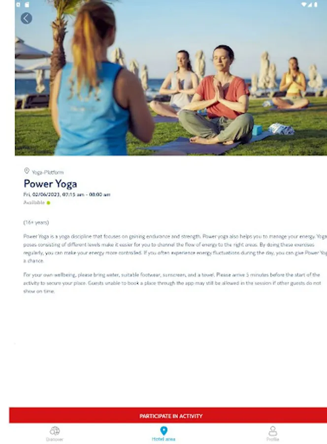 • Reservations for our various activities such as fitness classes, tennis or for relaxing moments in our private daybeds