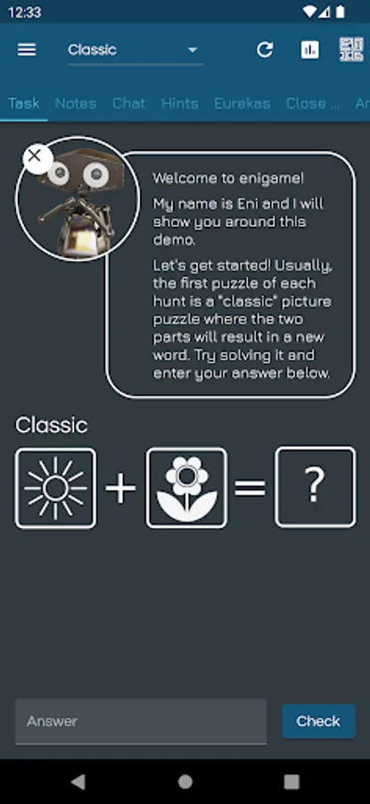 This is the accompanying app for enigame (https://www.enigame.de). enigame is a puzzle hunt for people who enjoy the combination of logical and out-of-the-box thinking and an homage to the infamous Arcane Game. You do not need any special knowledge to participate and succeed, you just need to know how to obtain it.