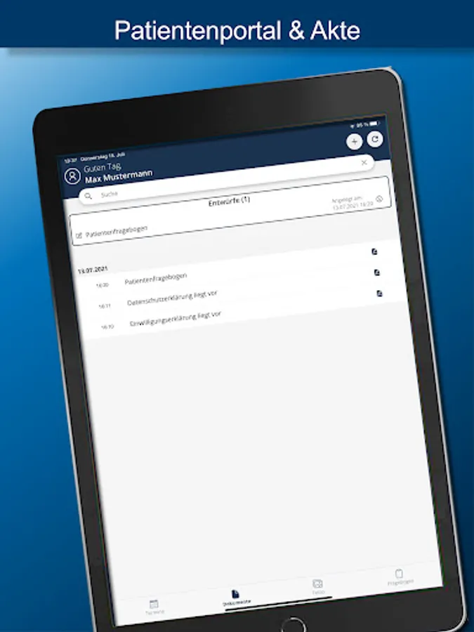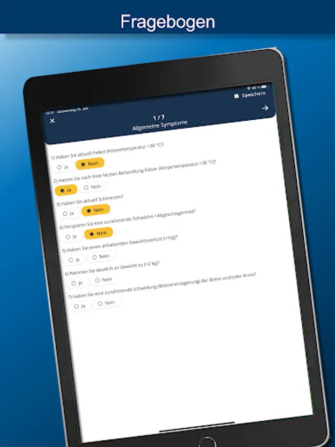 - Direct and intuitive recording of selected questionnaires, automatic upload and storage in the personal MRI | Patient portal