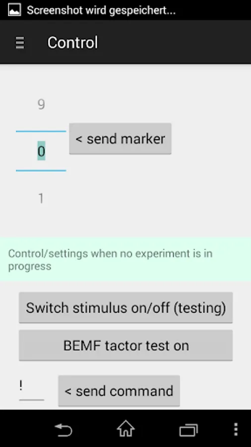 It is important to note and understand, that the app is (at the moment) a remote control and status display for the Arduino DRT setup: Therefore, no experimental data are stored in the app on the phone.