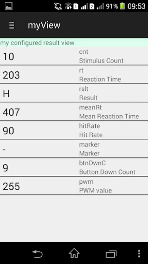 * config myView: Let you configure how and what you want to see of the status messages from the Arduino. The data items can be shown on your individualy configured myView and/or in screen pop-ups (toasts).
