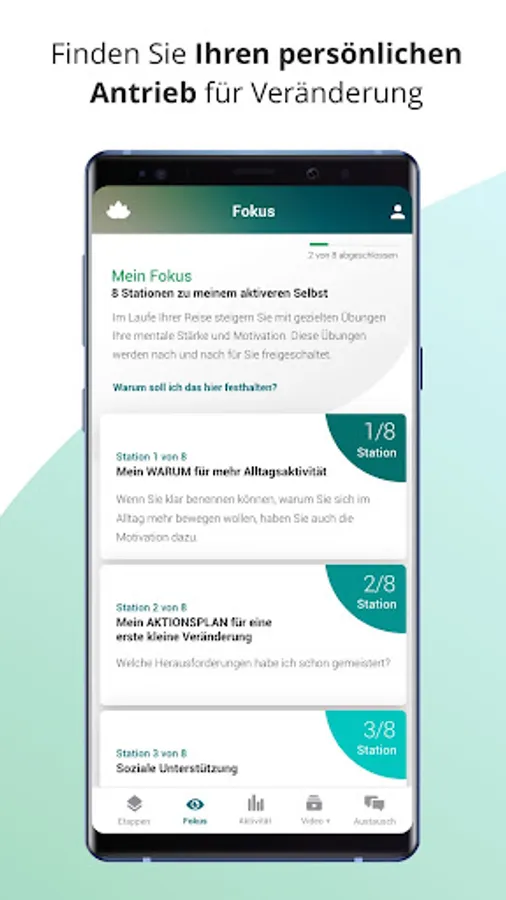 • In guided exercises you strengthen your mental strength and motivation - this way you stay tuned and reach your goal