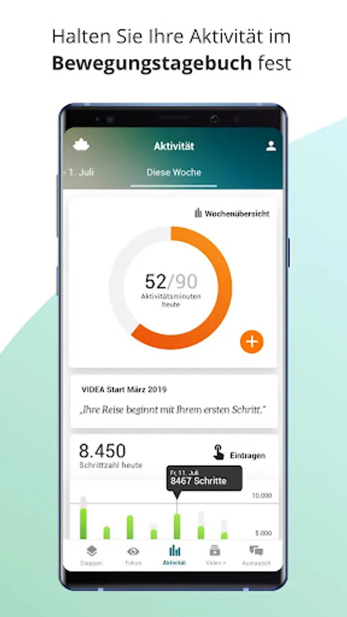 • You measure your success by recording all activities in the app - step counts can be automatically transferred from Health, Google Fit and Fitbit