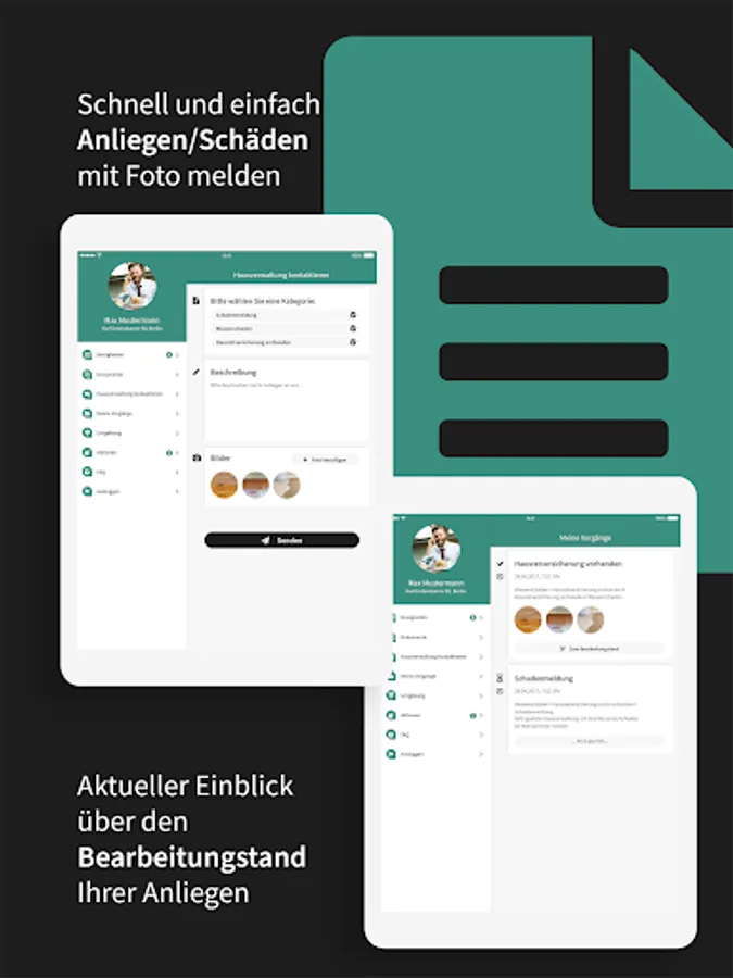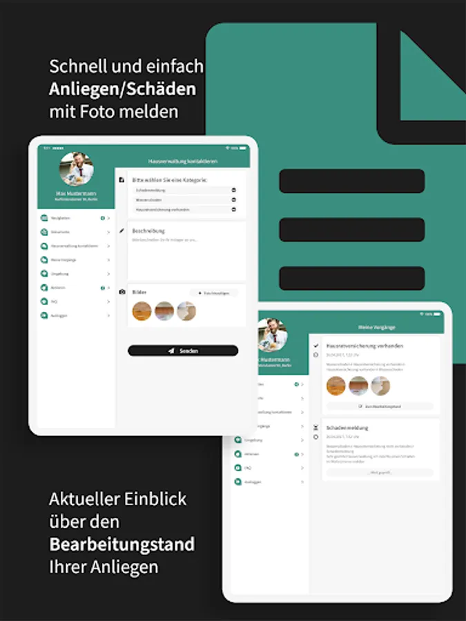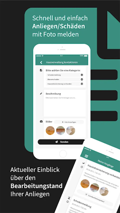 As a tenant or owner, you can report damage or concerns directly with photos via our app. Your inquiries are then available to our employees and can also be forwarded to craft businesses.