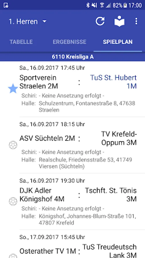 - Home Calendar to display the next home games all TuS St. Hubert Teams
