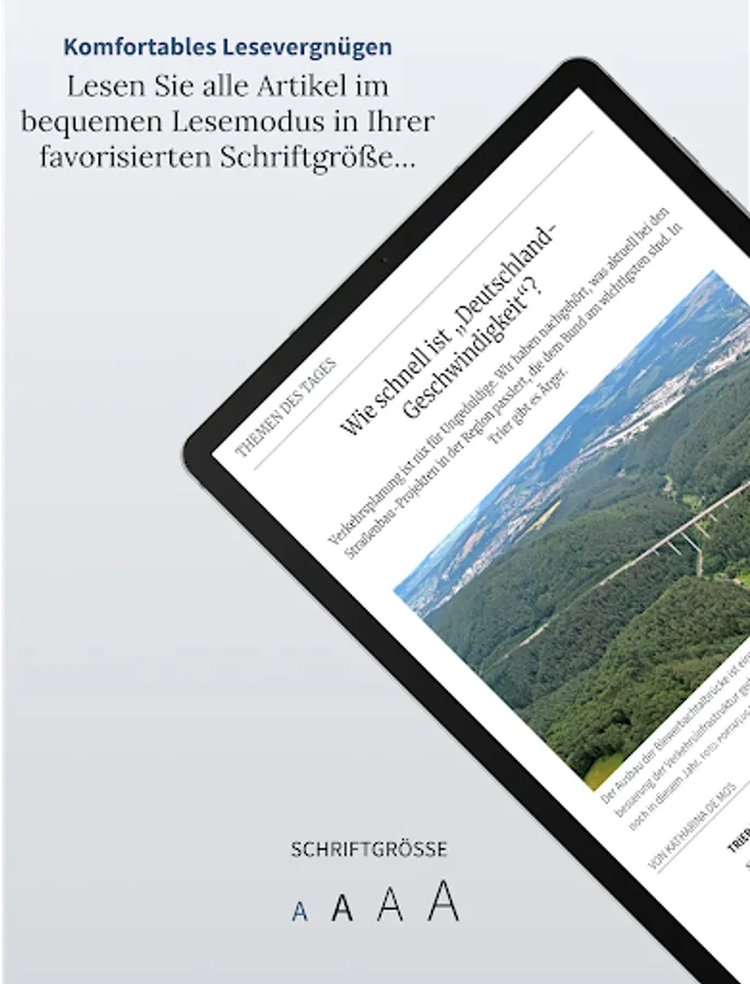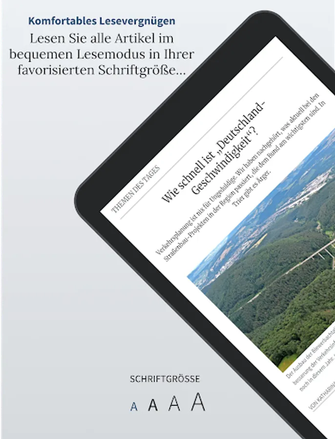 A subscription to the Trierischer Volksfreund via the ePaper app costs EUR 28.99 per month (billing via your Google account, no registration within the app necessary). The subscription is automatically renewed if you do not deactivate the automatic subscription renewal in the system settings at least 24 hours before the end of the term. If the price changes, auto-renewal will be turned off. Once a subscription has been taken out, it cannot be cancelled.