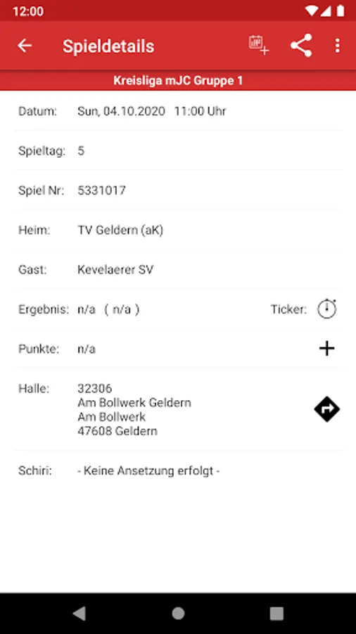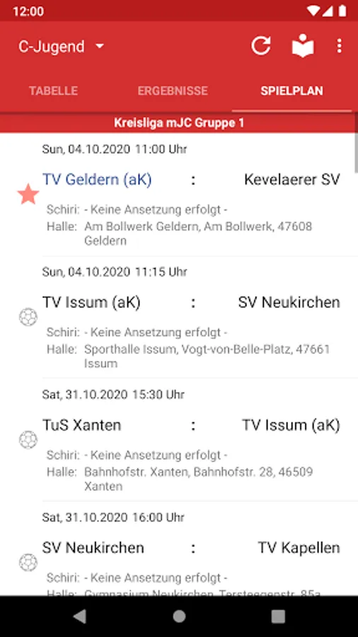- Home match calendar to display the next home matches of all TV Geldern teams
