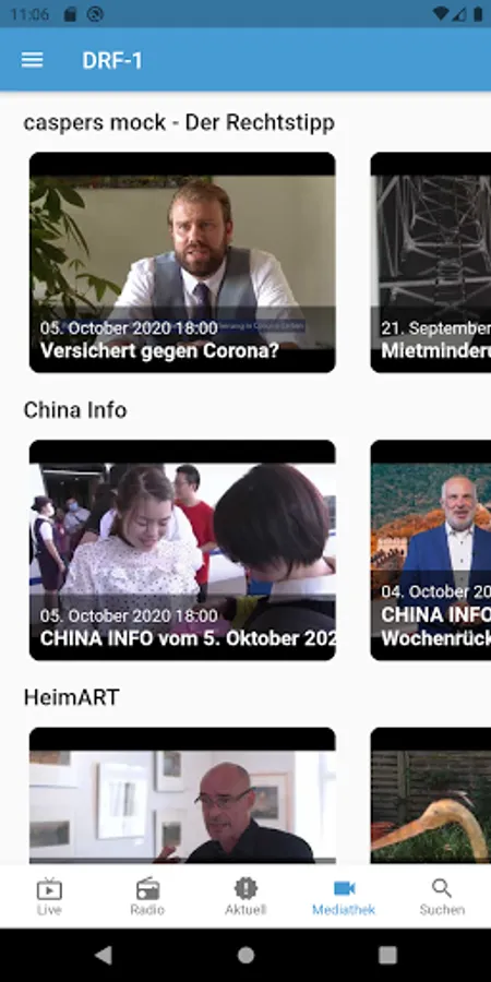Thanks to the media library in the DRF TV app, you can easily access all broadcasts of the past 30 days - from all Android and iOS devices.