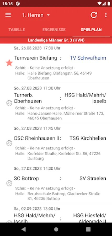 - Home game calendar to display the next home games of all TV Schwafheim teams