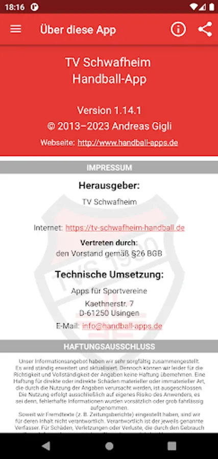 The official handball app of TV Schwafheim.