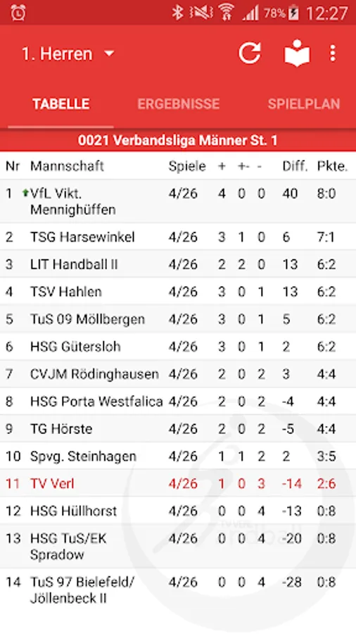 With this app you have scores, results and fixtures of all TV Verl teams always in view.