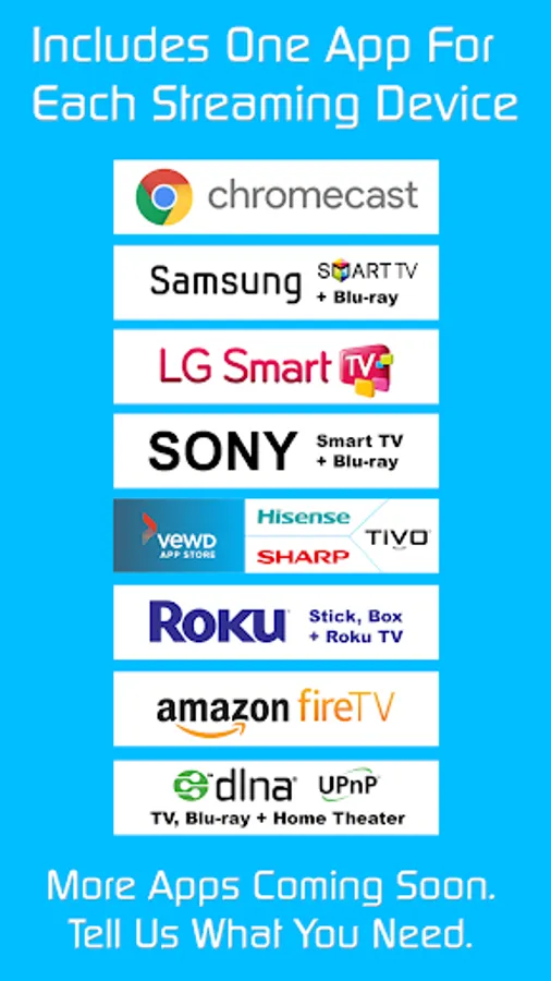 Disclaimer: This app is not affiliated with Google, Samsung, LG, Sony, Hisense, Sharp, TiVo, Roku, DLNA, Amazon or any other trademark mentioned here.