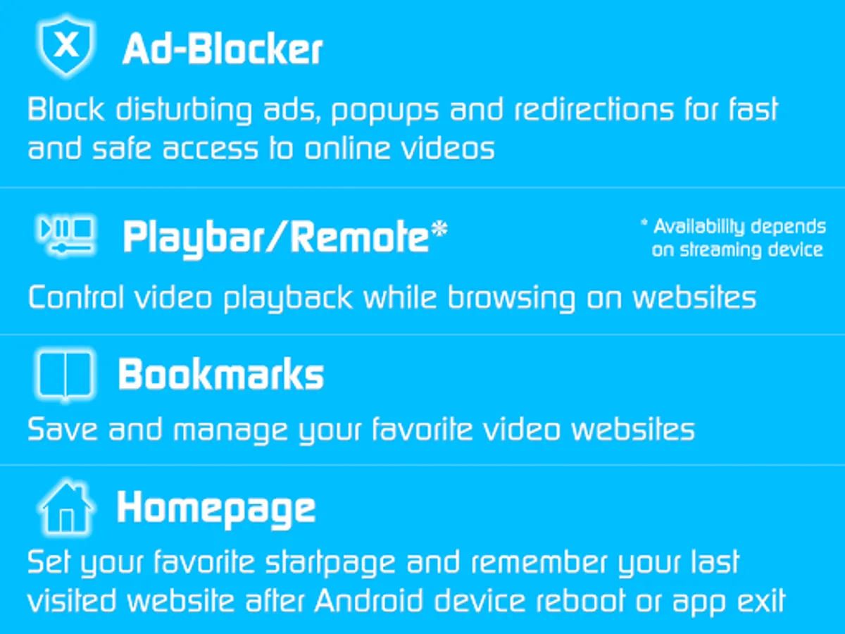 * Desktop Mode: Cloak your device as a desktop PC (helps detecting videolinks on some websites)