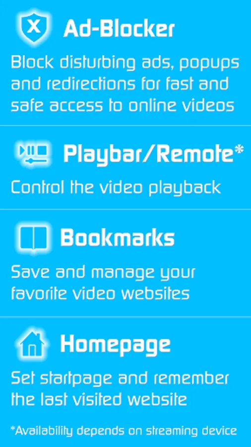 * SUPPORTED FEATURES: Some features depend on the capability of the specific streaming device and may not be available in all app editions.