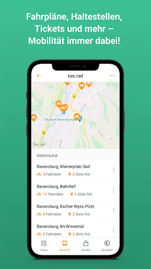So you can use the app to pay at participating retailers in Ravensburg and Weingarten and activate vouchers!