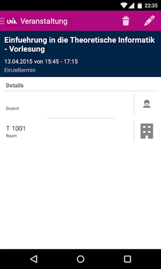 In addition to the convenient features, the CampusApp clearly presents useful information in a compact display. Location-independent all of this information are gathered together in your pocket: opening times, contact details as well as events are available just one finger tip away.