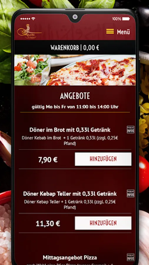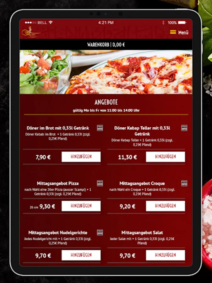 Download the Aladdin app now and order pizza, kebab dishes, pasta, Greek dishes and more - whether at home, in the office for lunch or to celebrate with friends. We're here for you!