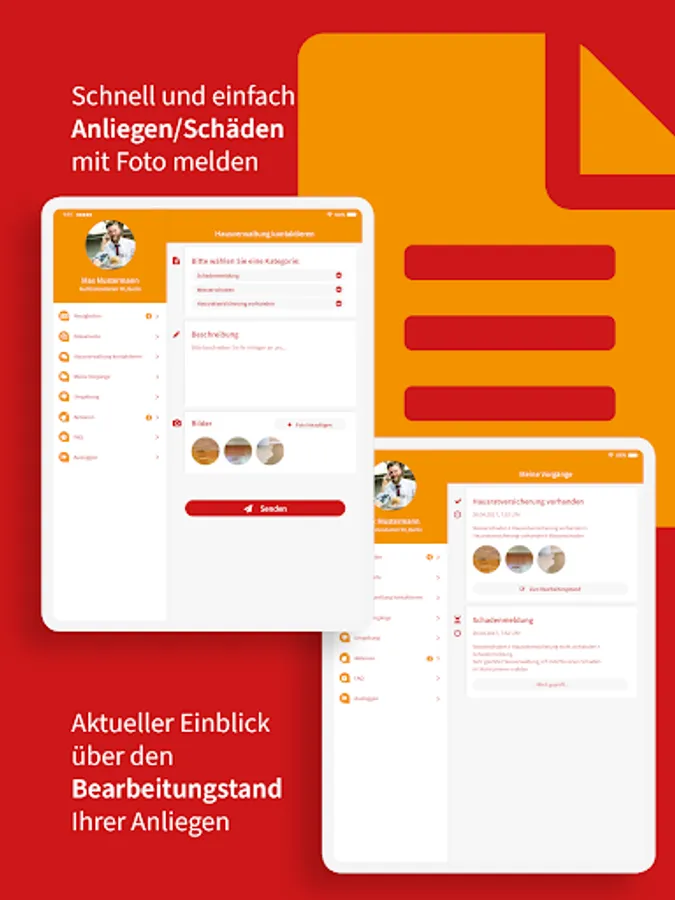 As a tenant or owner, you can report damage or concerns directly with photos using our app. Your inquiries are then available to our employees and can also be forwarded to craft businesses.