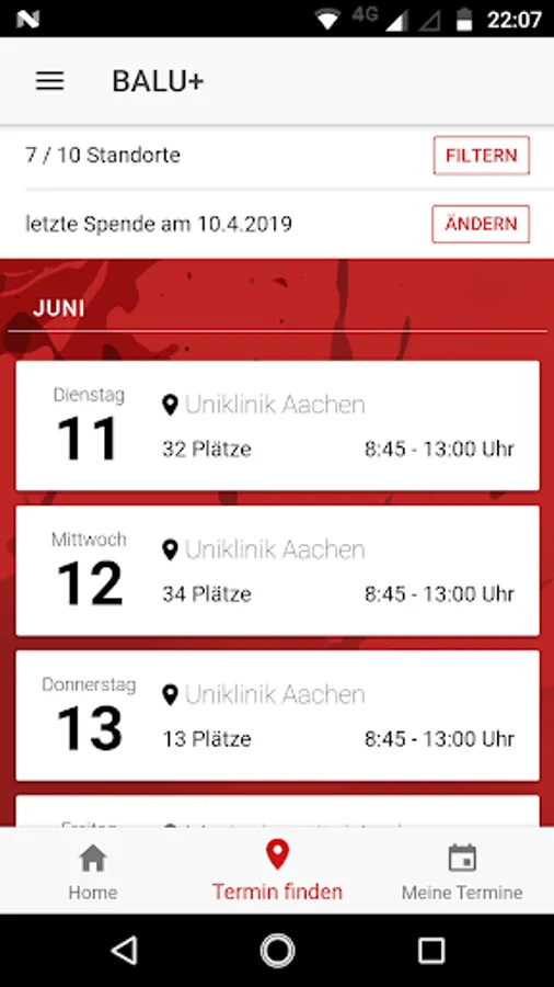 You want to make an appointment for your next blood donation to avoid long waiting times? Then ask BALU +. The FREE blood donation app of the University Hospital RWTH Aachen for Aachen and local environment offers you an overview of all locations and the respective donation periods. Just click on your desired date and decide whether you would like to be reminded by calendar entry and / or by mail to the appointment. A great service, which comes when called, if you have little free time, but would like to do something good.
