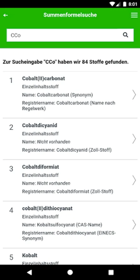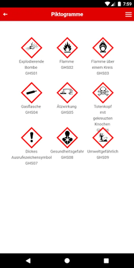 In the app, information on around 100,000 substances can be searched for and found intuitively using different tiles. You will find, among other things, molecular formulas, information on the state of aggregation, the nature of the substance and boiling and freezing points. In addition, possible uses and health hazards are indicated and reference is made to legal regulations that contain the substance in question.