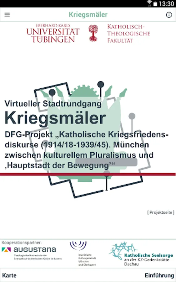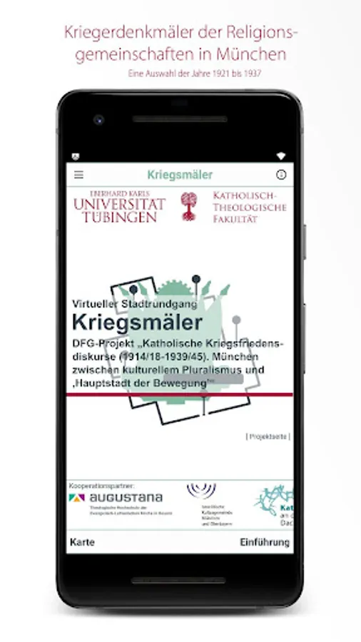 The app "Kriegsmäler" offers a range of Catholic, Protestant and Jewish monuments from the period after the First World War to its historic sites in Munich. The particular focus is on the interpretation of the text, image and symbol language of the monument, the representatives of the religious communities in the then societal debate positioned through which war and peace.