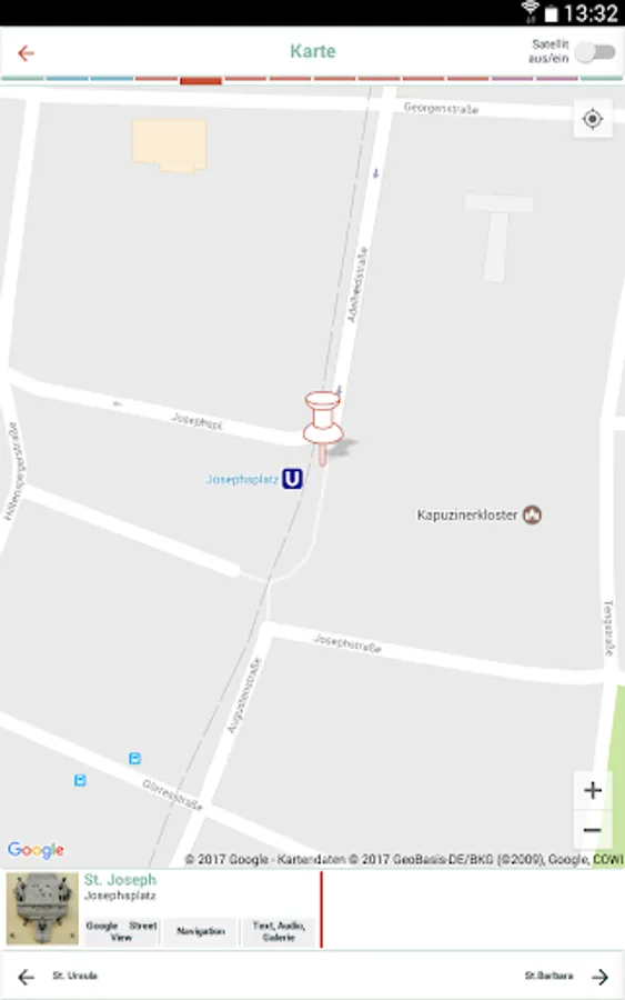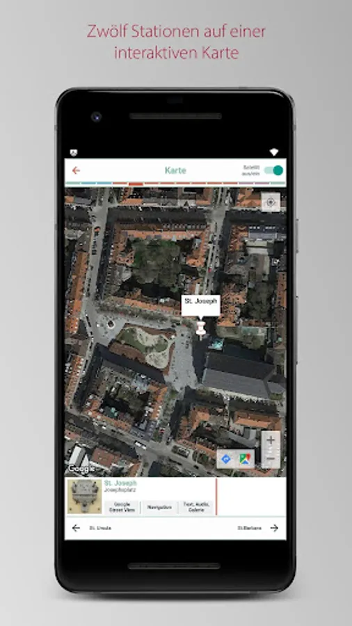 The integrated navigation function and the integration of "Google Street View" allow a virtual or real walking tour of Munich.