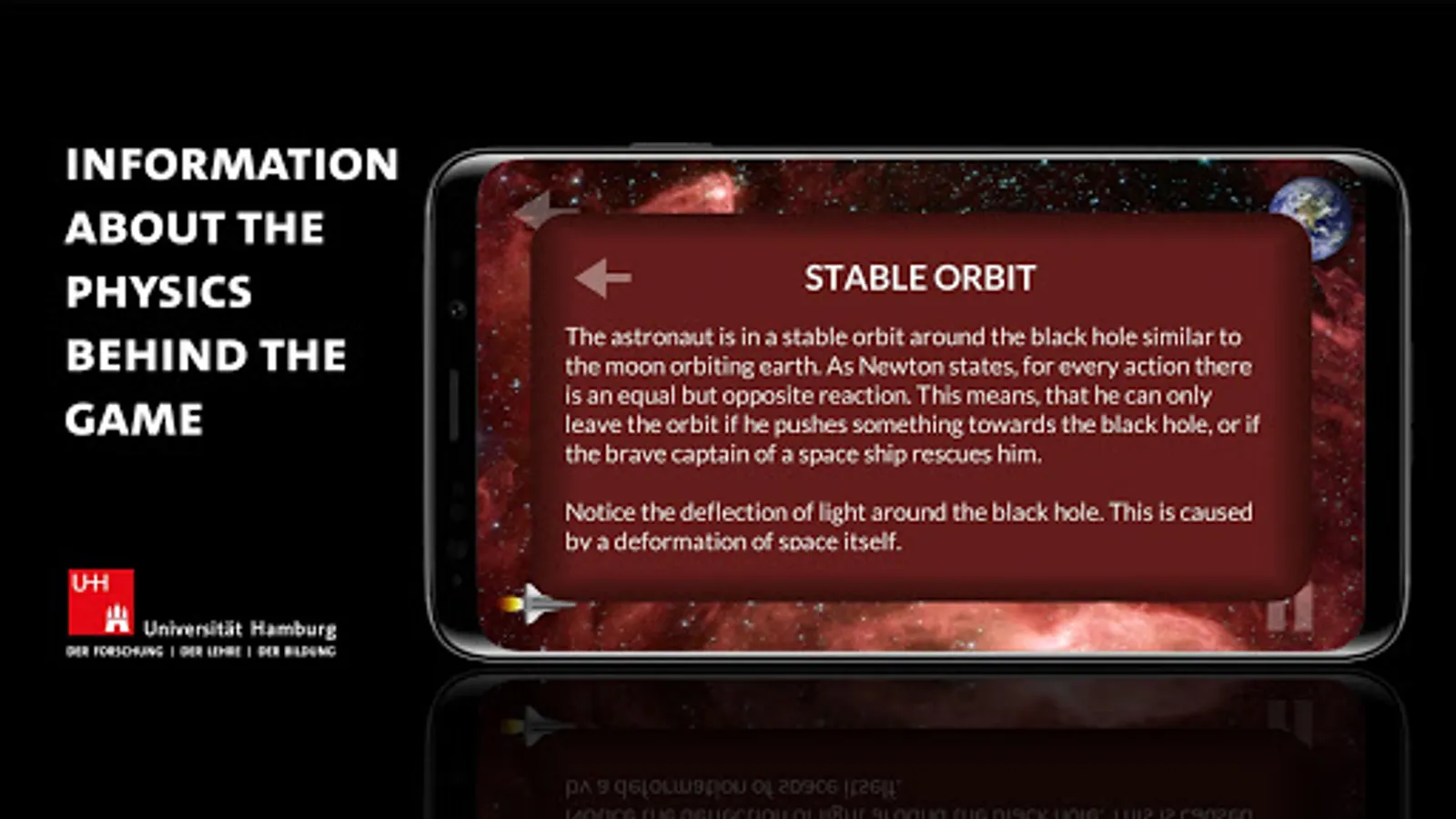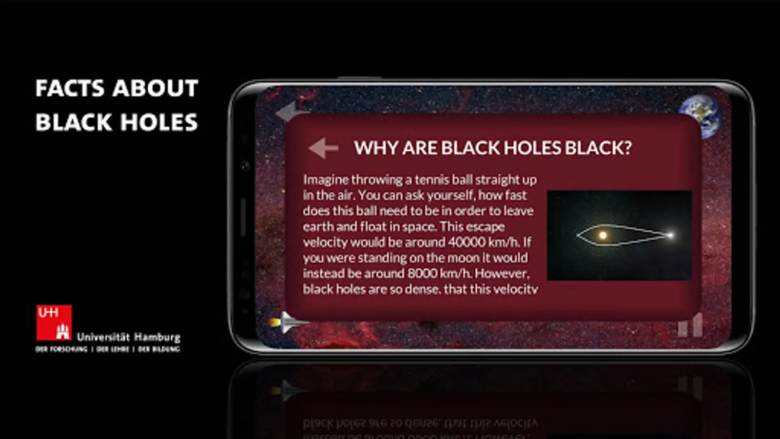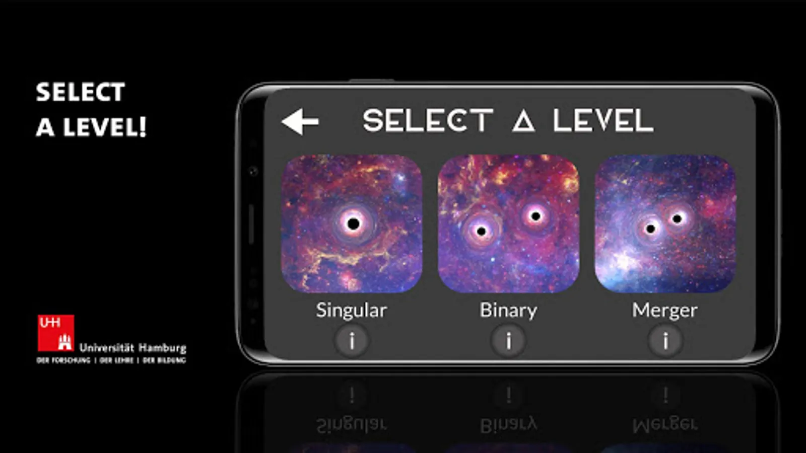 Why are black holes black? What are gravitational waves? And what can we learn about the universe by observing gravitational waves? The app provides background information on the physics behind mass, gravitational forces and black holes, and gives insights into the study of the universe through the observation of gravitational waves.