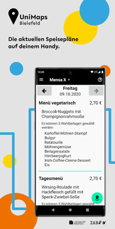 In case you want to have lunch in the cafeteria, the app can not only get you there as quick as possible, it even provides you with the latest cafeteria menu.