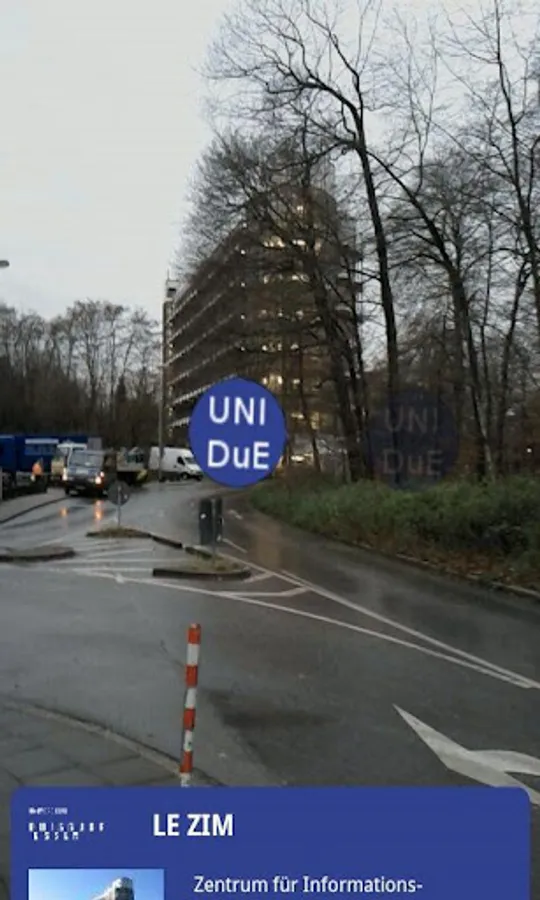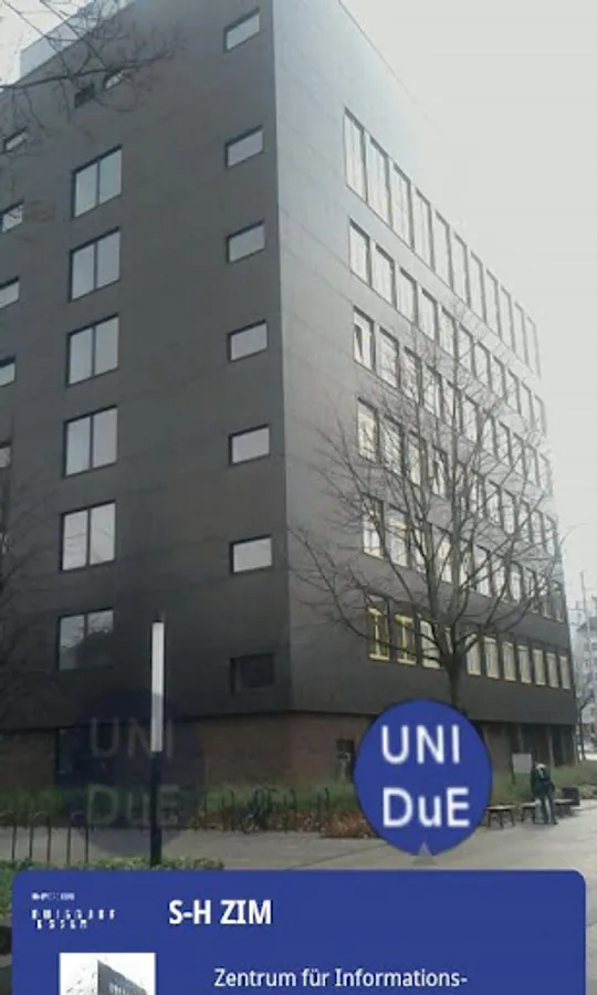 Orientation at the campus of the University of Duisburg-Essen for students and guests (ZIM). A launcher for a Layar layer.