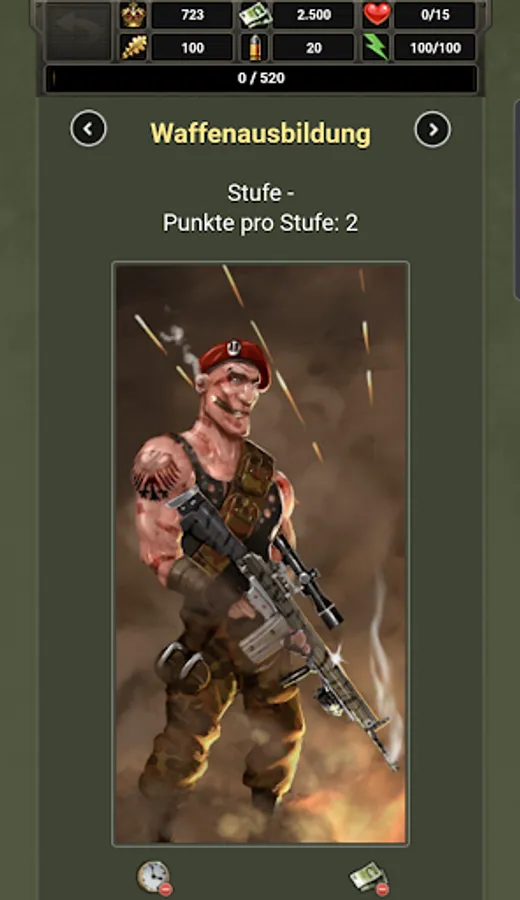 In the team home you put your luck to the test, because in this area everything revolves around golden watches and casino mood. In a game in the room, you can get rich quick, but get poorer even faster. Often it just means push service! At the practice site, you show what's in you. However, if you are looking for missions, you will look past the staff building. Heroic tasks such as bird rearing path and Spindaufräumen bring you at least valuable rewards. The ammunition warehouse is the place of encounter. Using entries in lists you meet other soldiers and challenge fellow players to fight. You can equip yourself last but not least during a visit to the NATO shop. The bearded gentleman with the charming charisma provides you with everything you need.