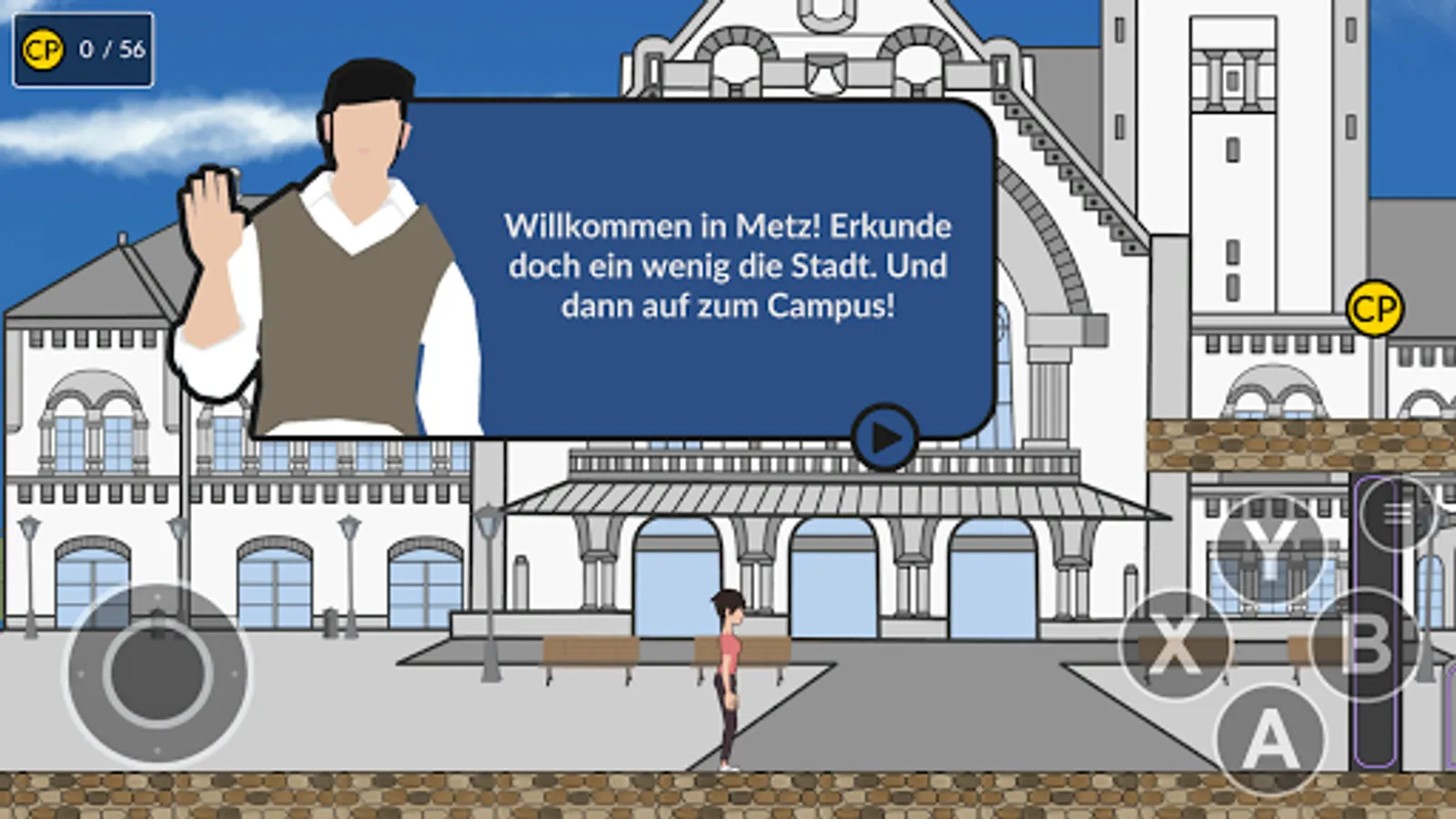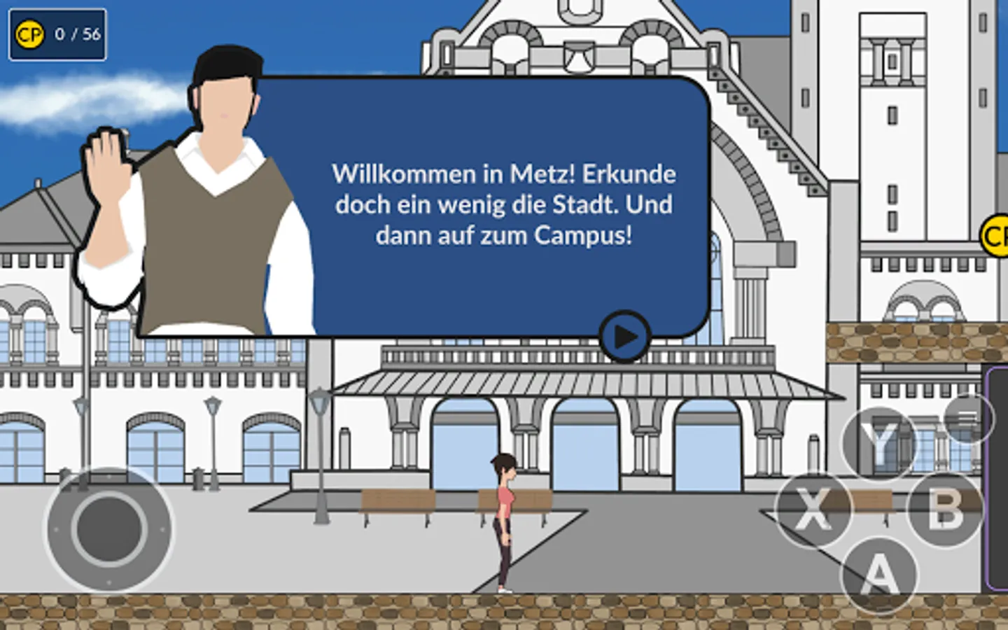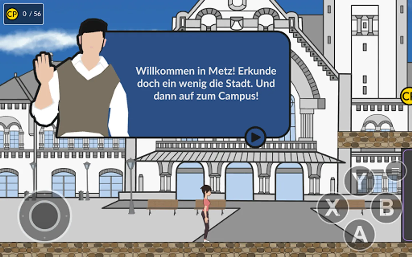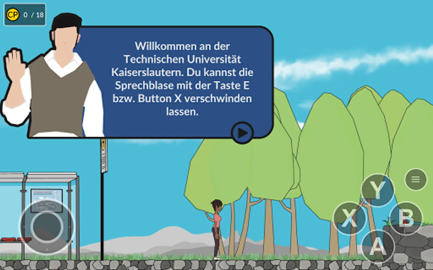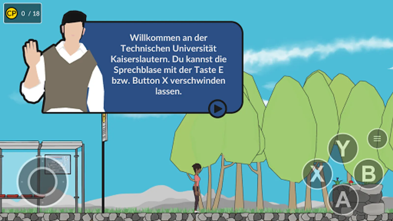 For the individual levels, special features and sights of the participating institutions were incorporated as a background. The course of the game is inspired by typical study phases from getting to know the campus to the final thesis.