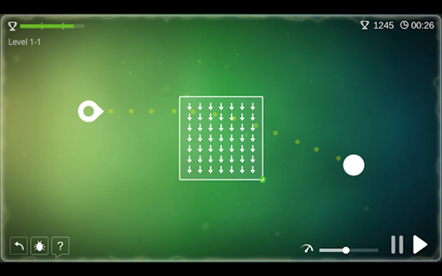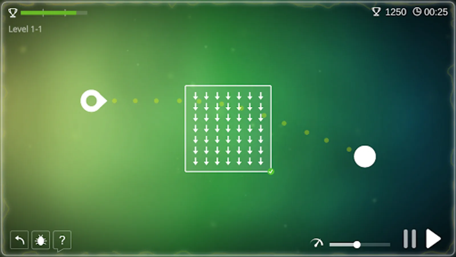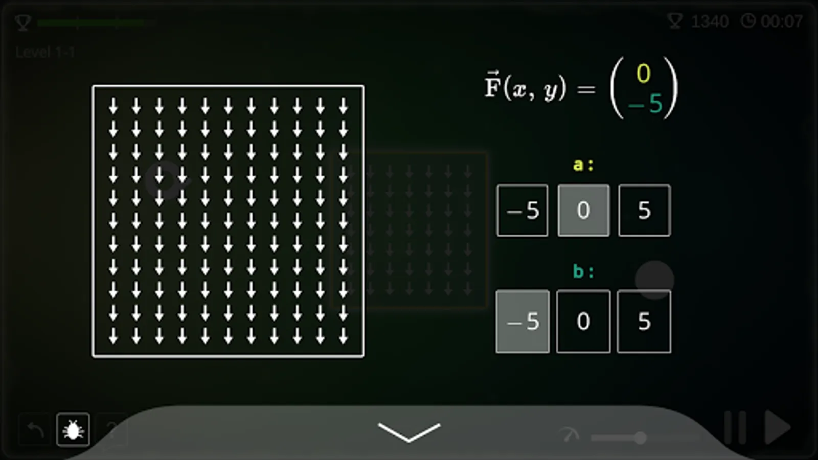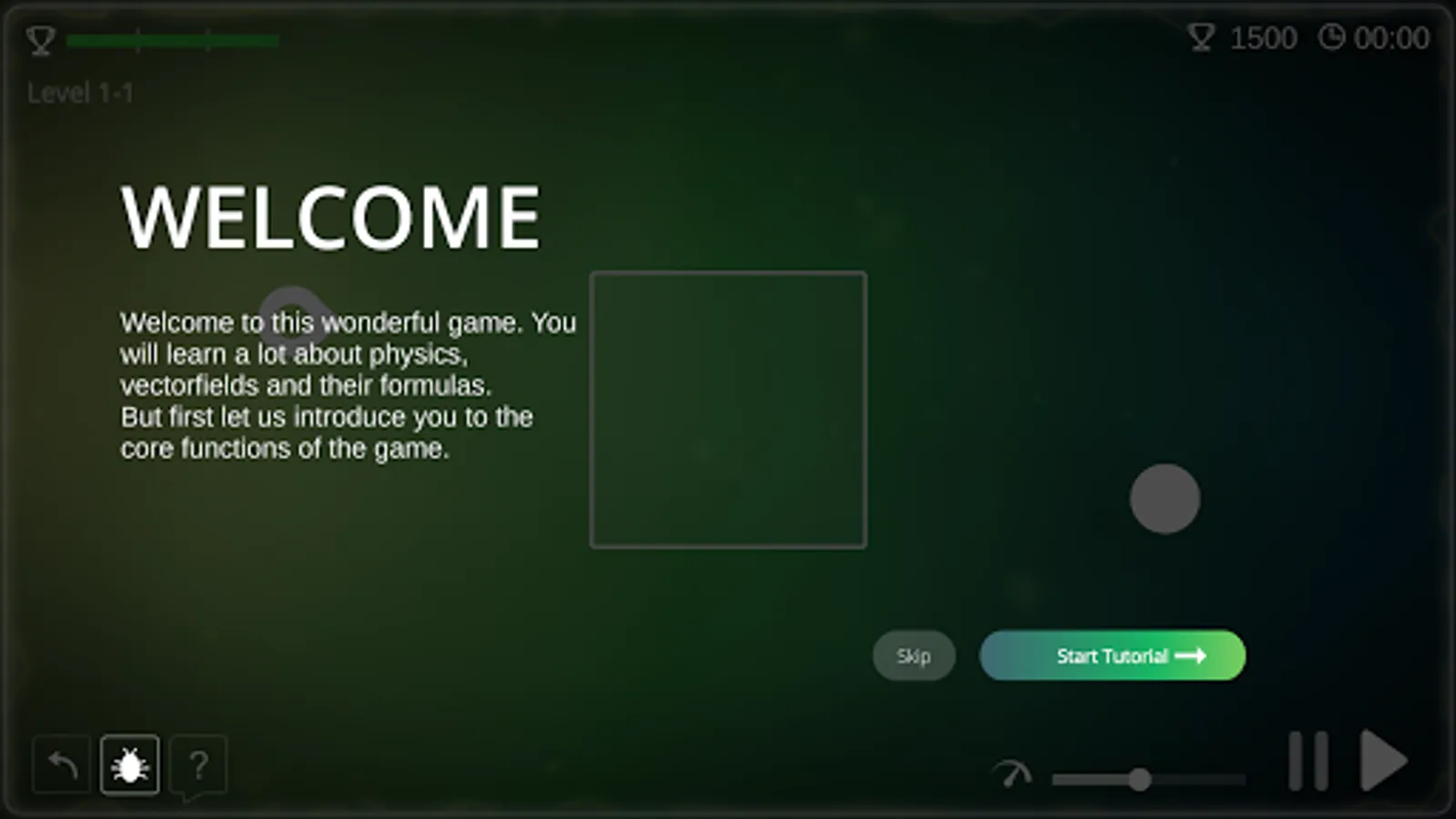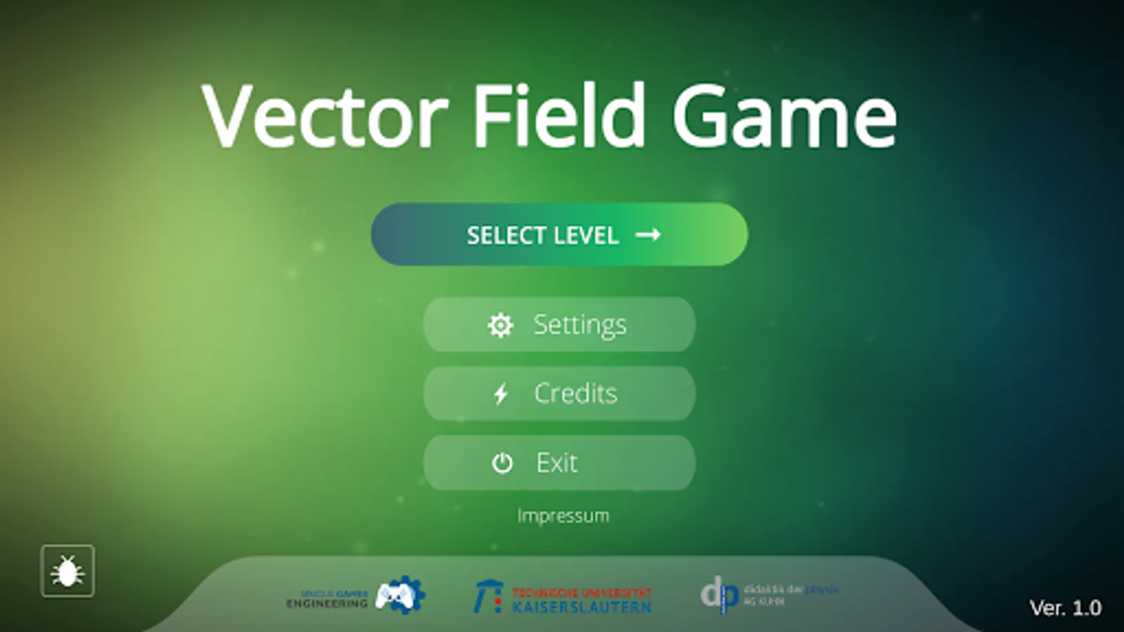 The vector field game allows players to enter the world of vector field mathematics in an entertaining way. The game is in the genre of puzzle and puzzle games. The goal of the game is to direct particles from the starting point to the target point. The vector fields, which can be manipulated by the player using the mathematical formula, can influence the direction and speed of the particles. Graphically, the level is laid out in a minimalist interface design in 2D. The individual levels differ in the coloring and the difficulty. The difficulty is increased in the higher levels by obstacles, charges of the particles and hidden vector fields.