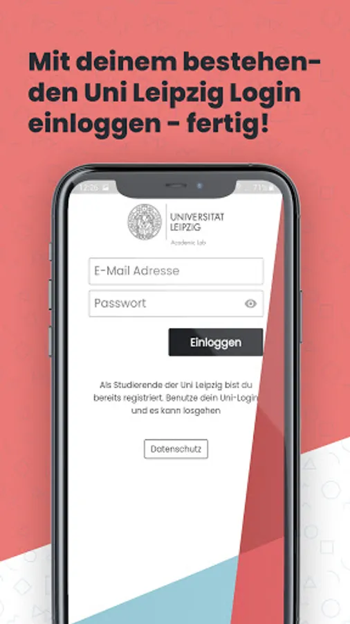 Use is currently only intended for students at the University of Leipzig. With the Unilogin assigned when you enrolled, you can also use the study app. No further account is necessary!